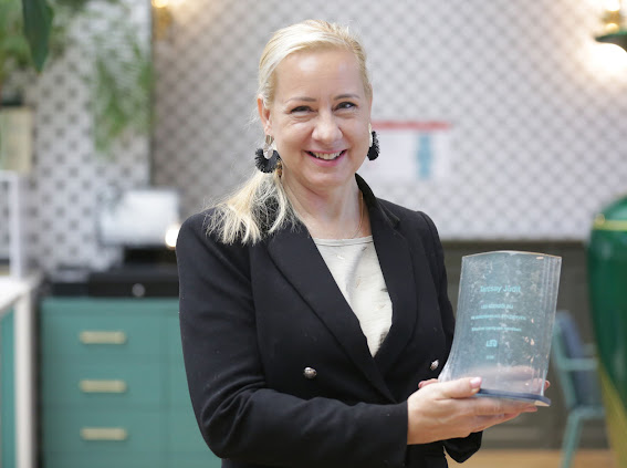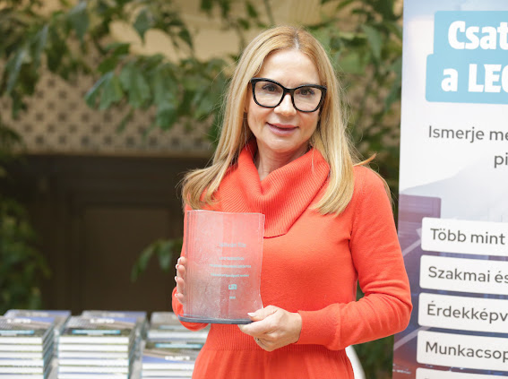 A tíz éves töretlen szakmai munkát és lelkesedést Szász Károly üveg- és porcelánművész által megálmodott, mentett antik üvegekből öntött díjával honoráltuk a Benchmarking munkacsoport eddigi és jelenlegi vezetőjének Décsi Gábor MRICSnek és Ruzsinszki Tibornak, a tagoknak Kuczogi Lászlónak, Tarcsay Juditnak és főtitkárunknak, Istiván Ritának.